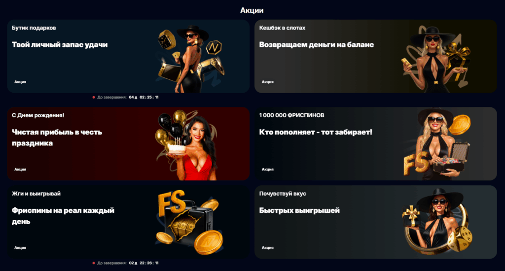 Раздел «Акции» обновляется очень динамично. Мы рекомендуем заглядывать туда как минимум раз в неделю, так как именно там появляются новые ограниченные по времени предложения, а также анонсы крупных турниров с миллионными призовыми фондами.