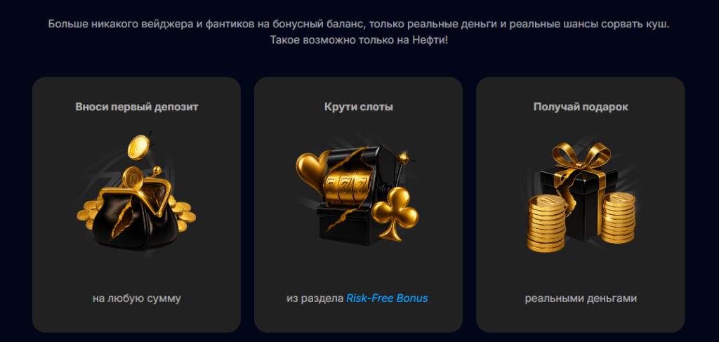 Бонус за регистрацию в Neft casino — это ваш пропуск в мир больших возможностей. В отличие от многих конкурентов, которые дарят стандартные фриспины, здесь новичков ждет более выгодное и надежное предложение — «Страховка первого дня».