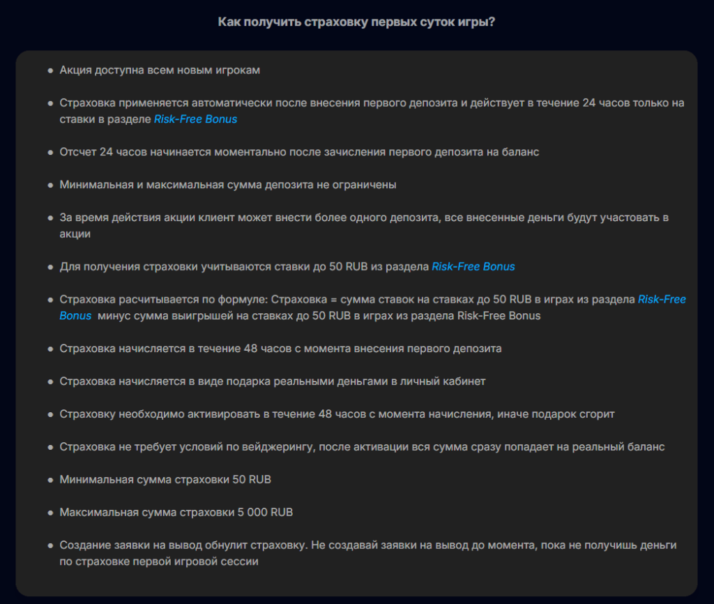 - Страховка первого дня: Возврат 100% от суммы проигрыша в течение первых 24 часов после регистрации.