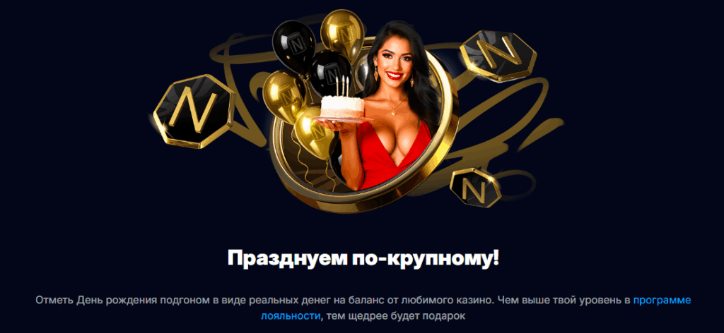 Neft casino помнит о самых важных датах для своих клиентов. В ваш день рождения система автоматически определяет это событие и начисляет специальный подарок. Размер бонуса на день рождения в Neft casino является персональным и напрямую привязан к вашему уровню в программе лояльности.