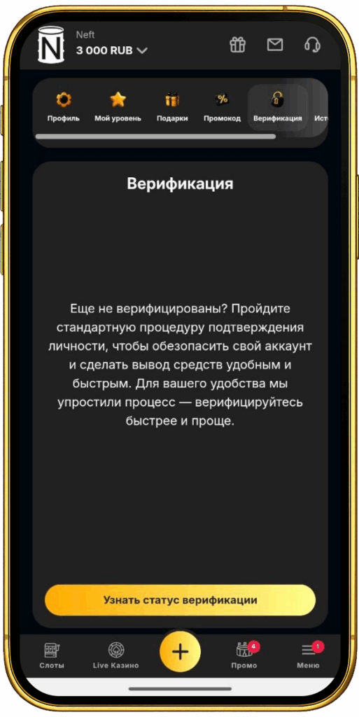 Процедура верификации в Neft casino — это стандартная и обязательная практика, направленная на обеспечение безопасности всех участников. Она предназначена для подтверждения возраста и личности игрока, что является мерой против мошенничества и отмывания средств.