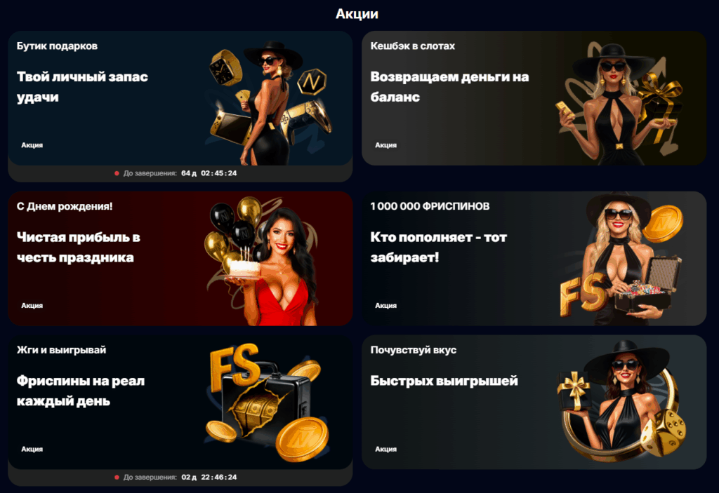 Бонусная политика казино — одна из самых проработанных на рынке. Система поощрений Neft casino выстроена таким образом, чтобы мотивировать как новичков, так и ветеранов. Сюда входит не только стандартный приветственный пакет, но и уникальные предложения, такие как страховка первого депозита (возврат проигрыша в течение 24 часов), ежедневные фриспины и еженедельный розыгрыш миллиона фриспинов среди всех, кто пополнил счет.